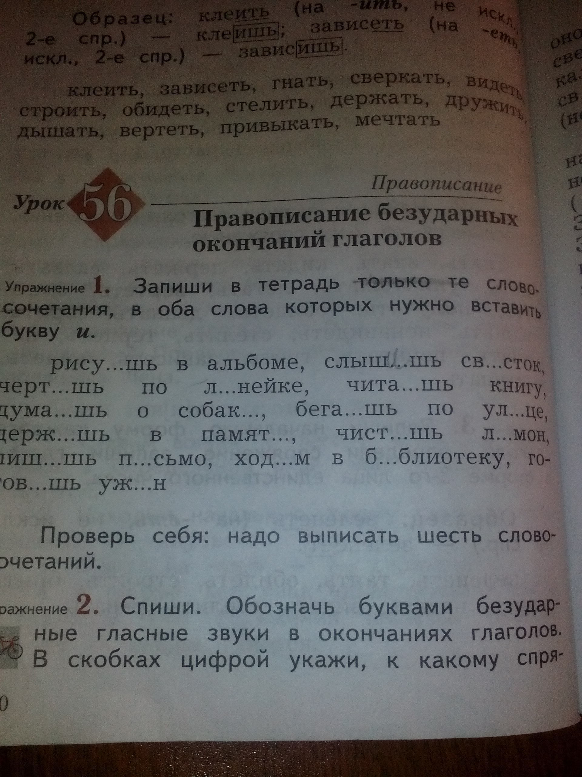 II спр.-слышИшь свисток,чертИшь по линейке,держИшь в памяти,чистИшь лимон,ходИм в библиотеку,готовИшь ужин.