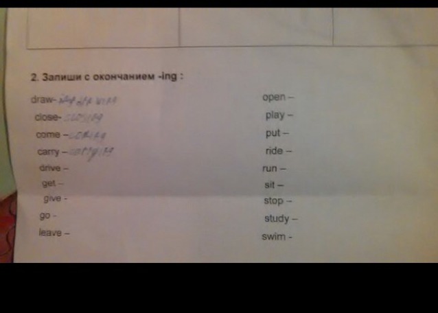 driving getting giving going leaving opening playing putting riding running sitting stoping studying swimming