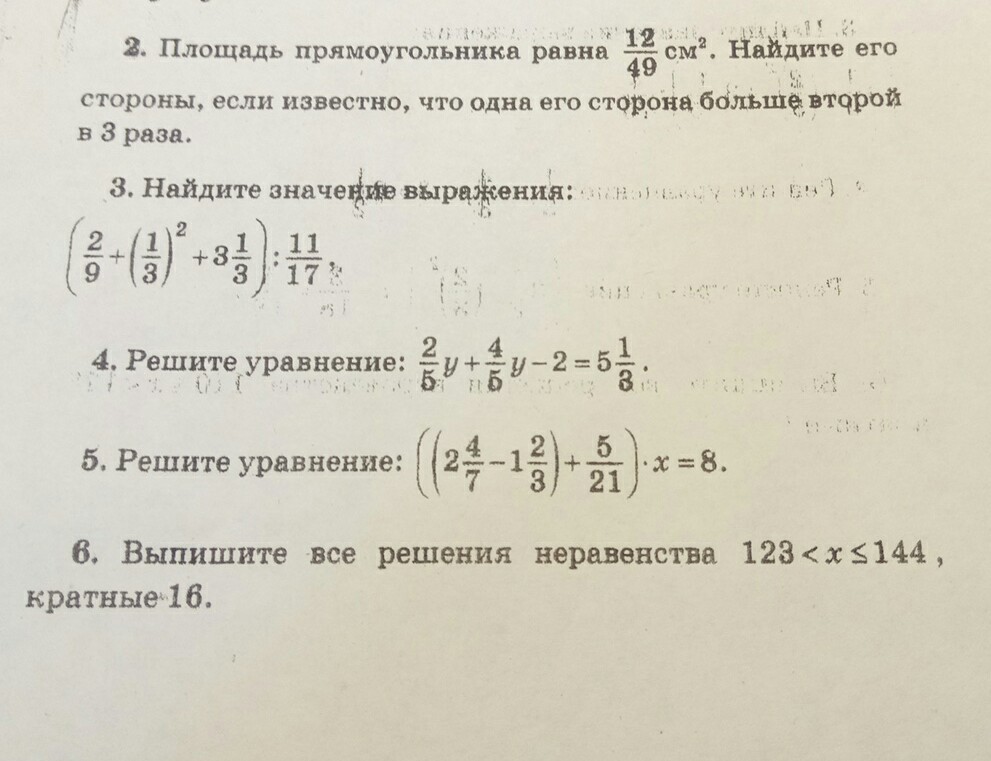 №2 пусть одна сторона х см, тогда другая 3х см, а т.к.площадь прямоугольника равна 12/49 кв. см, составм уравнение: