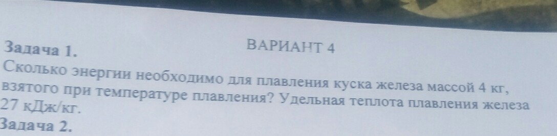 сколько энергии необходисо для плавления куска железа массой 4 кг взятого при температуре плавления?удельная теплота плавления железа 27 дж/кг