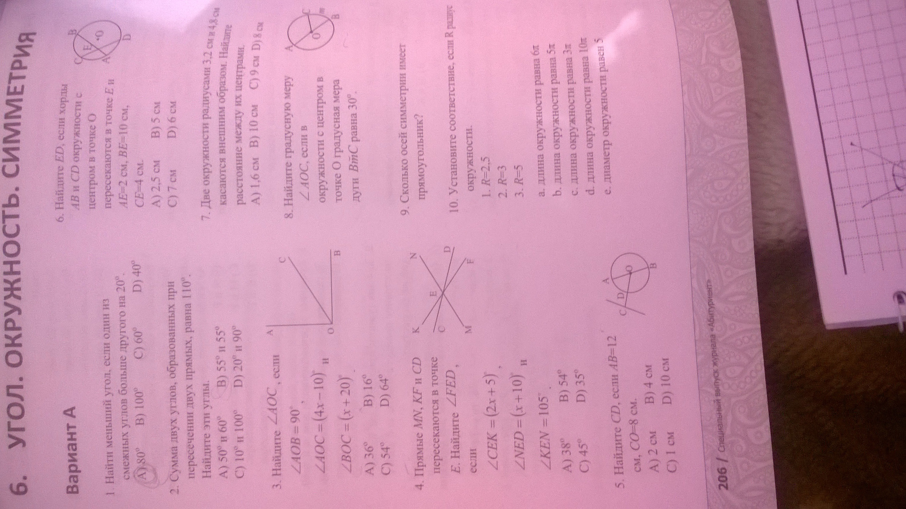 5.АО=ОВ=6см также АО=ОD=6см, а т.к. СО=8см, то CD=CO-OD=8-6=2см ответ:А