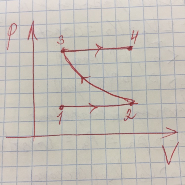 3 и 2 изотермическое сжатие U=0,A<0,Q<0,Q=U,