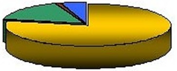 Желтый сектор - это азот (N2) его около 78%. Зелёный сектор - кислород (O2) в атмосфера содержится около 21% этого газа. Остальное - это углекислый газ, благородные газы, пары воды. Существование синего сектора мне не понятно. Судя по его размеру, это примерно 3-5% от всего воздуха, но ни один газ такой объем не занимает.