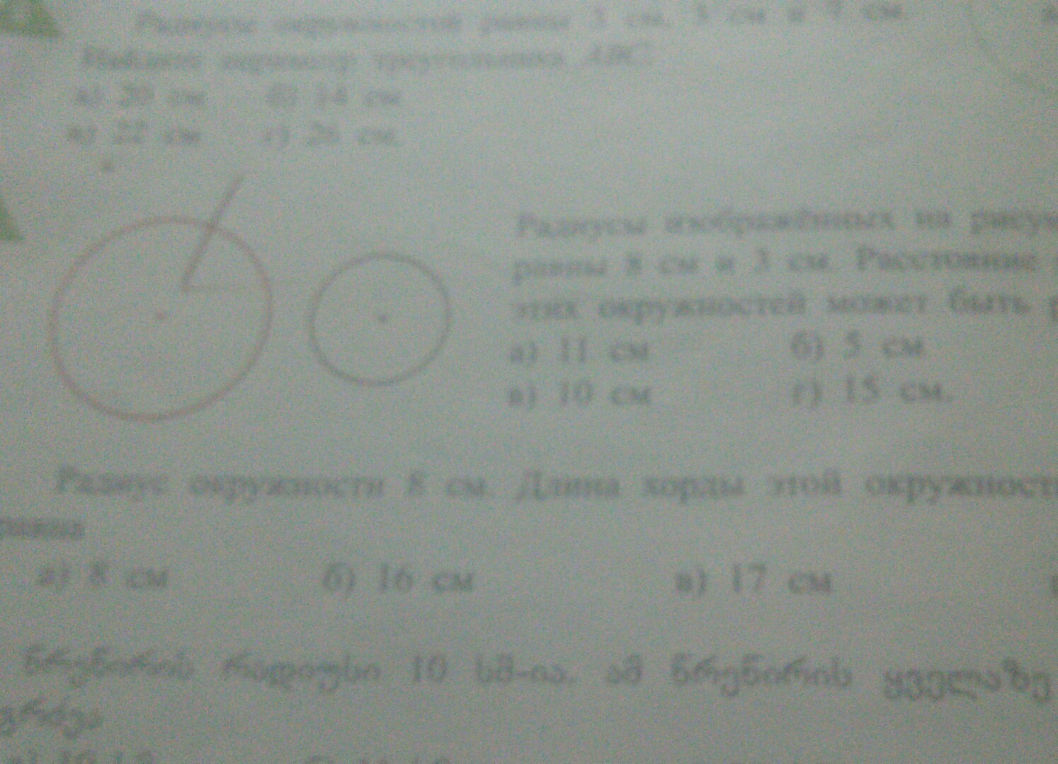 радиусы изображенных на рисунке окружностей равны 8 см и 3 см расстояние между центрами окружностей равна