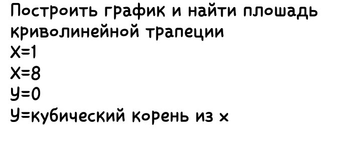 На графике провести 2 линии х = 1 и х = 8 до пересечения с графиком - это и будет искомая площадь.