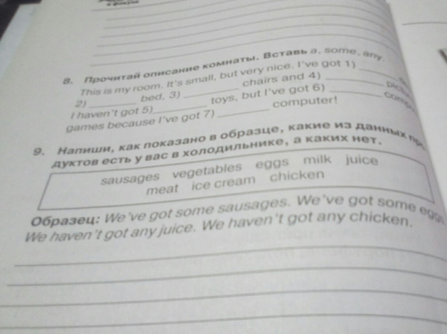 1) a , 2) any 3) some 4 ) a 5) some 6) any 7 ) a