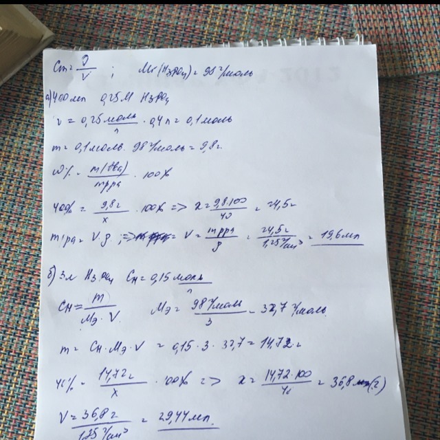 а) 400 мл 0,25-молярного раствора Н3РО4;