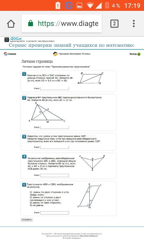 5. если градусные меры одинаковые, то по одной стороне и двум углам