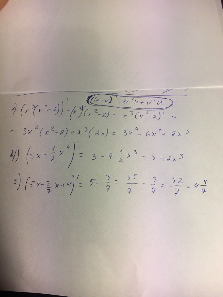 Вот решения, сверху формула для нахождения производной где есть умножение
