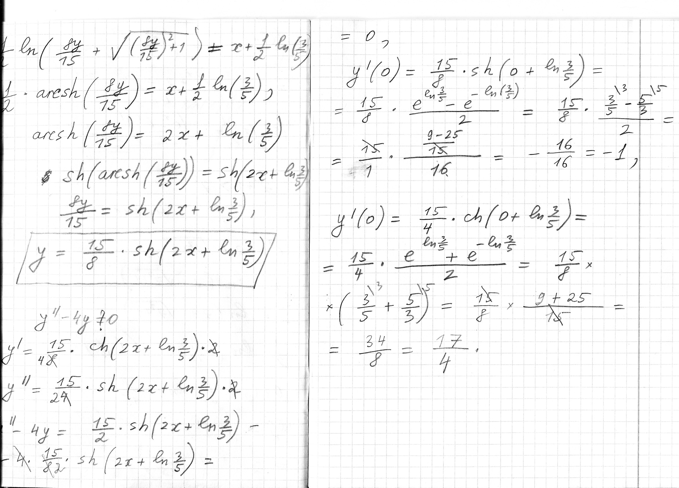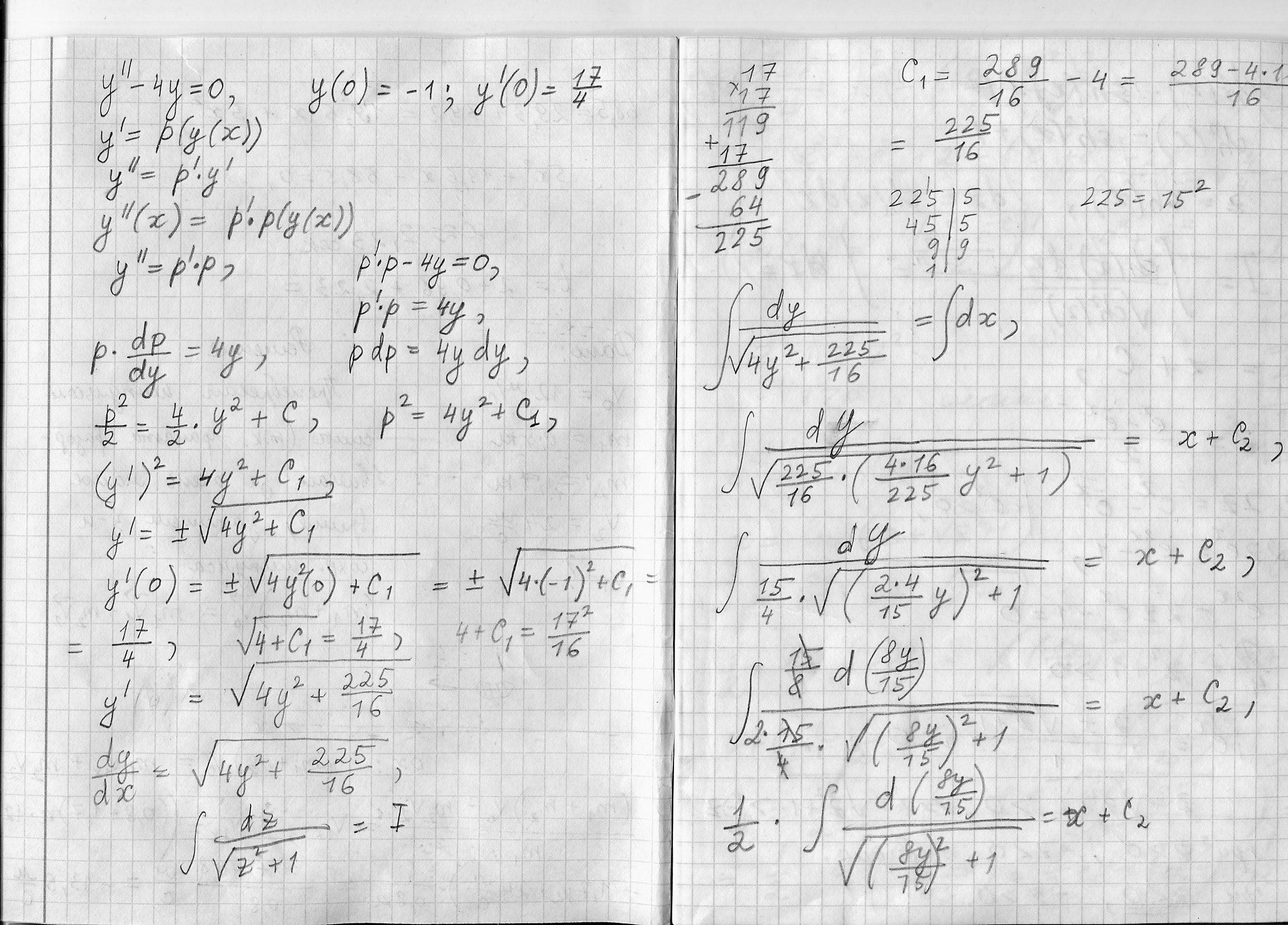 Найти частное решение дифференциального уравнения первого порядка, удовлетворяющего начальные условия. y''-4y=0,y(0)=-1,y'=(0)=17/4