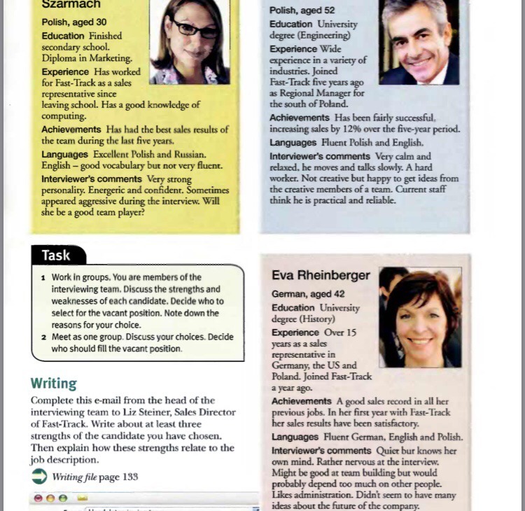 Выберите подходящего кандидата на работу,объясните свой выбор