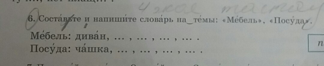 МЕбель: дивАн, крЕсло, стУл, стОл, шкАф.