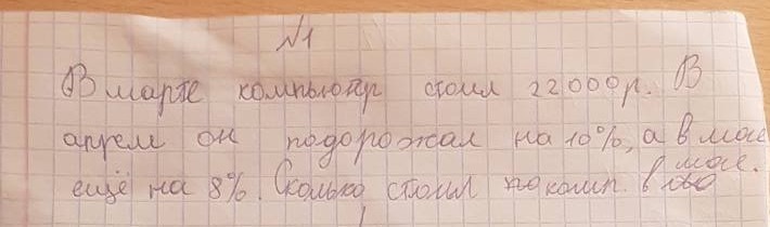 далее найдем на сколько процентов подорожал компьютер 10+8=18процентов