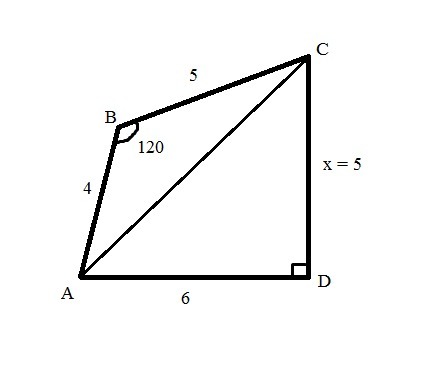 = 16 + 25 - 2 * 4 * 5 * (-0.5) = 61