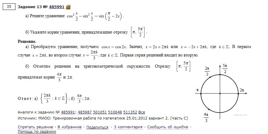 Это я поняла, но я не поняла откуда там нашли корень после cosx = cos2x, а не то, как пришли к нему. :)