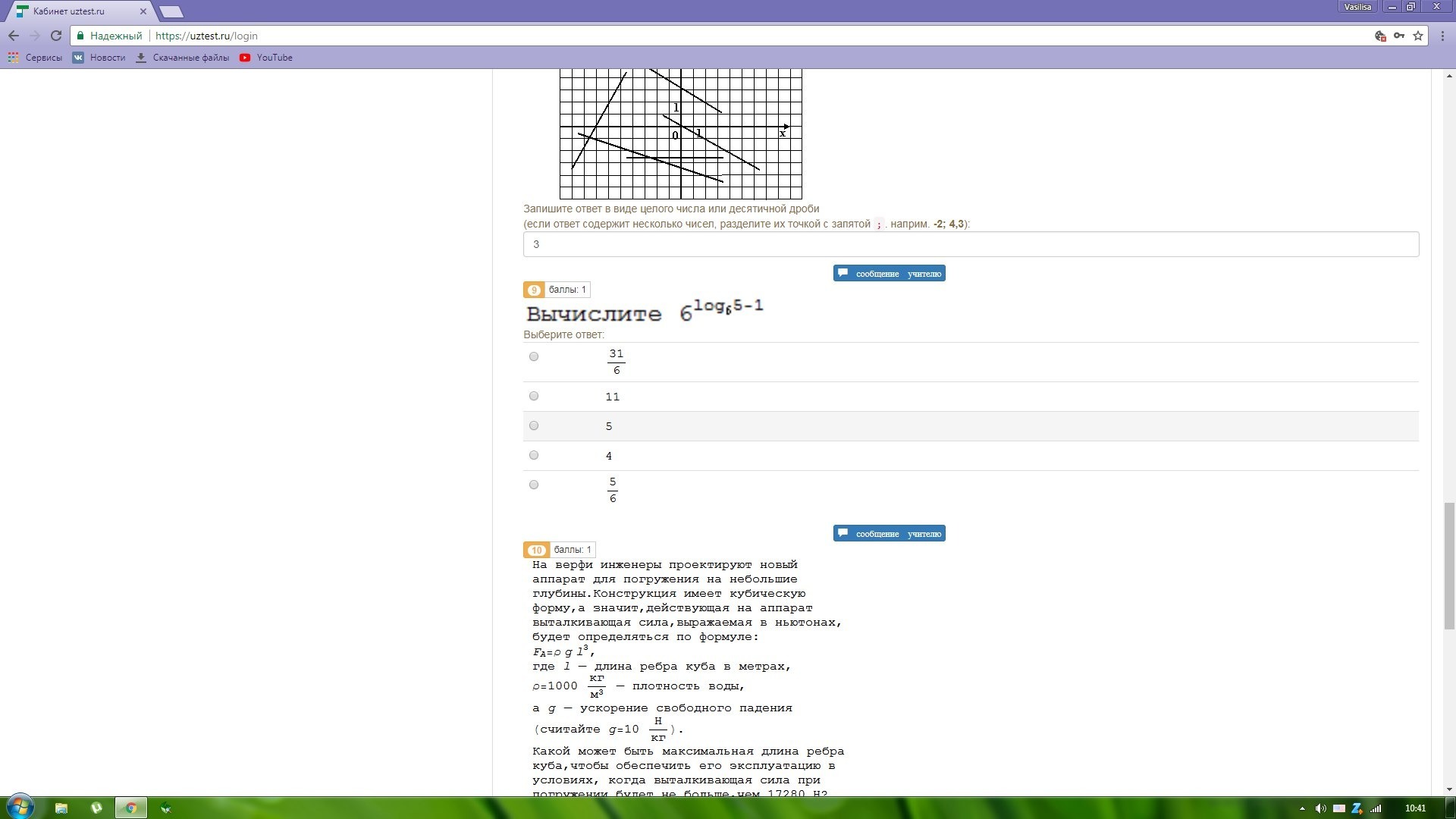 6^{ log_{6}5-1 }= frac{6^{ log_{6}5}}{ 6^{1} }= frac{5}{6}