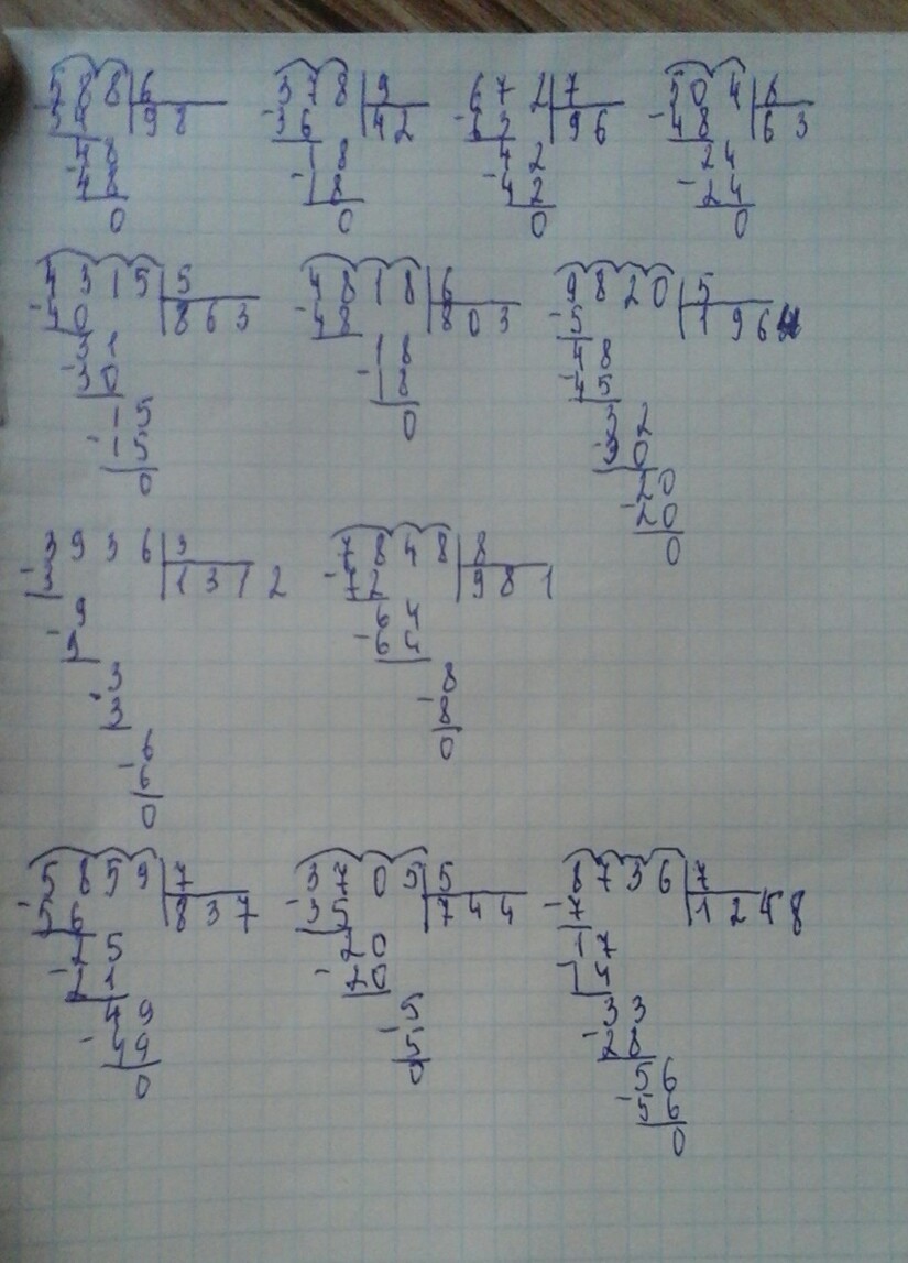 588 : 6 = 378 : 9 = 672 : 7 = 504 : 8 = 4315 : 5 = 4818 : 6 = 9820 : 5 = 3936 : 3 = 7 848 : 8= 5 859 : 7 3 705 : 5= 8 736 : 7=