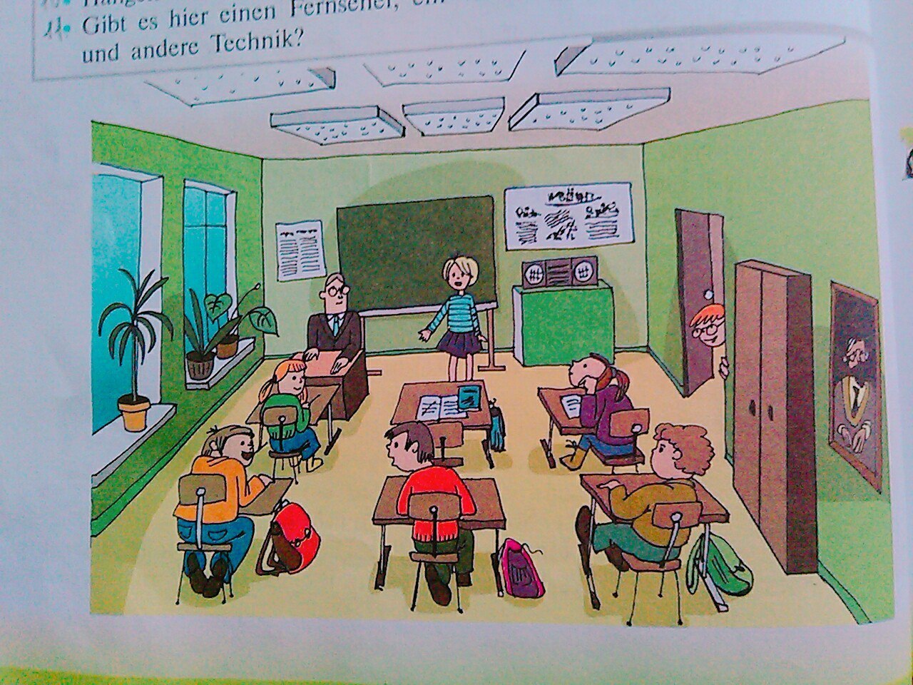 1. In einem deutschen Klassenzimmer gibt es Tische.