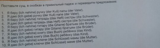 Ich nehme das Heft der Schwester. ( Я беру тетрадь сестры.)