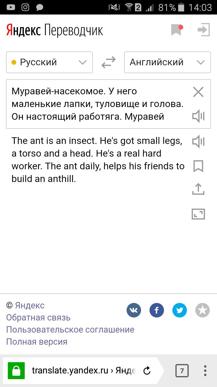Можете написать сочинение по муравья на английском языке. Типа сколько у него ног, какой он расцветки и та. 4-5 предложений