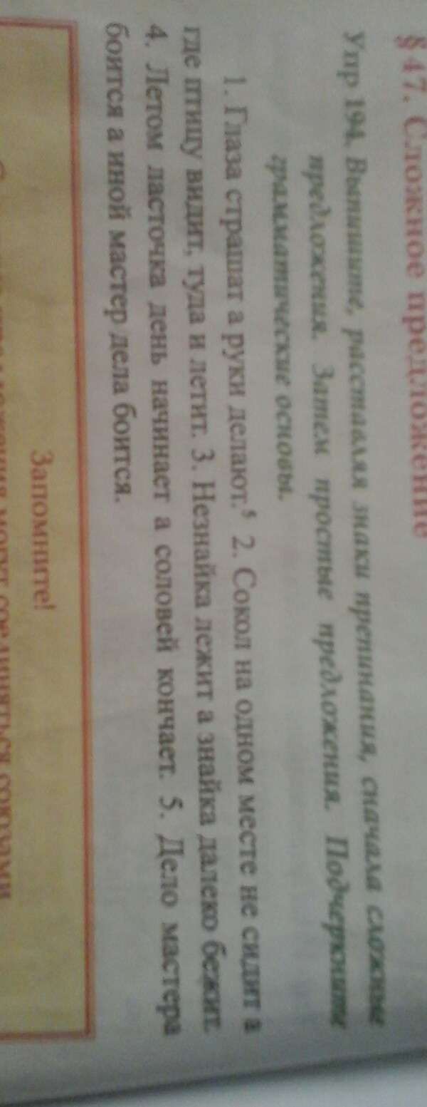 выпишите ,расставляя знаки препинания, сначала сложные предложения. Затем простые предложения. подчеркните грамматические основы
