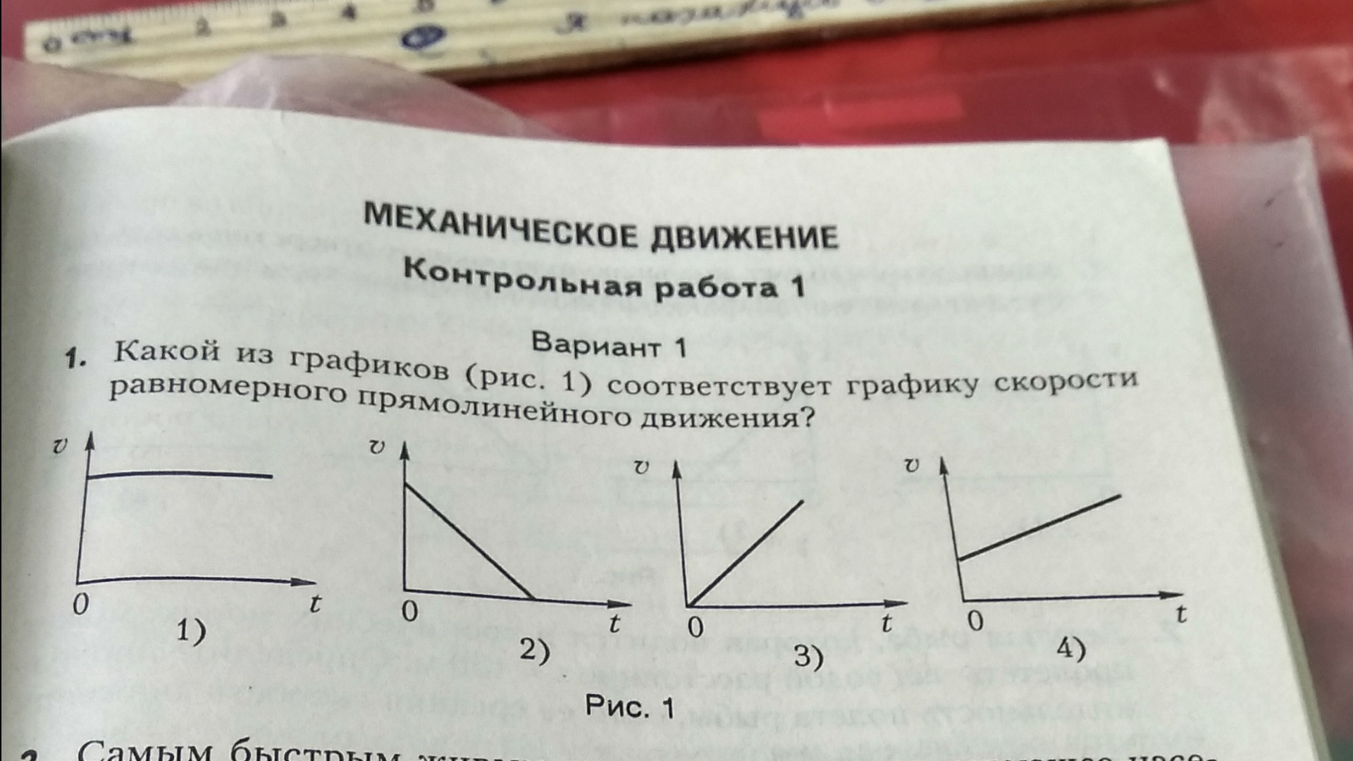 Какой из графиков соответствует графику скорости равномерного прямолинейного движения?