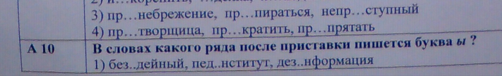 А10: БезЫдейный, педИнститутный, дезИнформация.