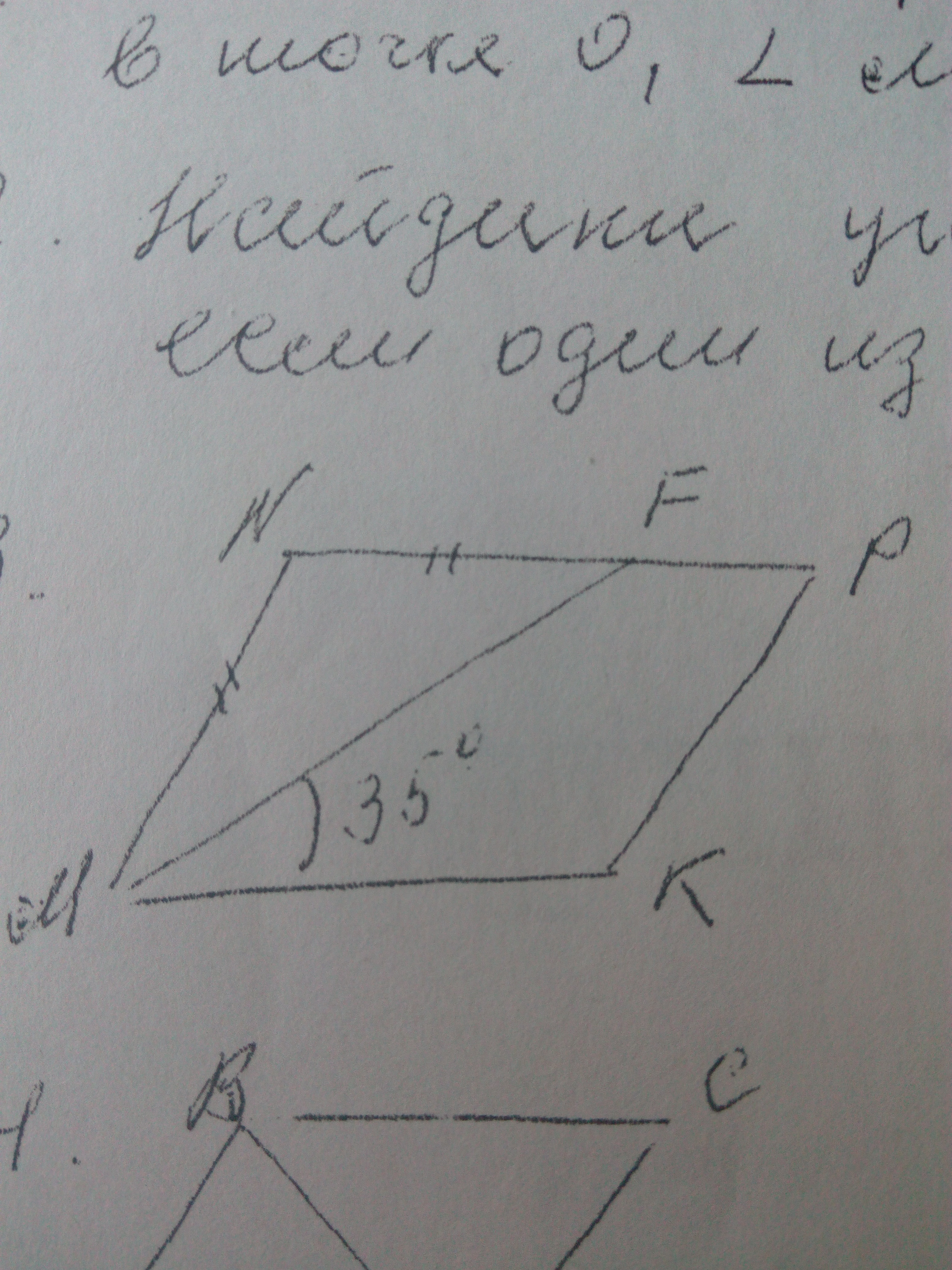 угол FMK = угол MFN = 35гр. => т.к. треугольник MNF - равнобедр., то угол N = 180-35*2 = 110. угол N = угол K = 110гр.