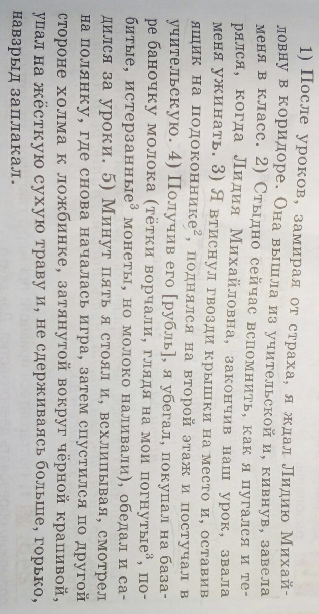 4) я убегал; покупал на базаре баночку; тётки ворчали; молоко наливали; обедал; садился за уроки