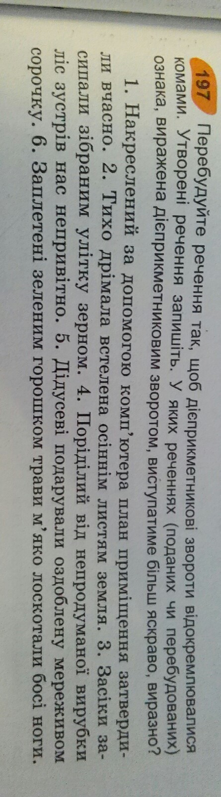 План приміщення, накреслений за допомогою комп'ютера затвердили вчасно. Земля, встелена осінім листям, тихо дрімала. Засіки засипали зерном, зібраним улітку. Ліс, поріділий від непродуманої вирубки, зустрів нас непривітно. Сорочку,оздоблену мереживом, подарували дідусеві. Трави, заплетені зеленим горошком, м'яко лоскотали босі ніжки.