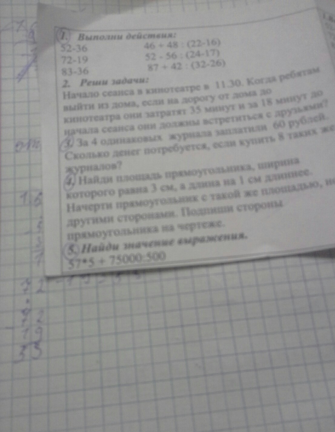 в задании с русунком нужно сделать ширину 4 см и длину 3 см и углы обозначить буквами, к примеру: А В С D.