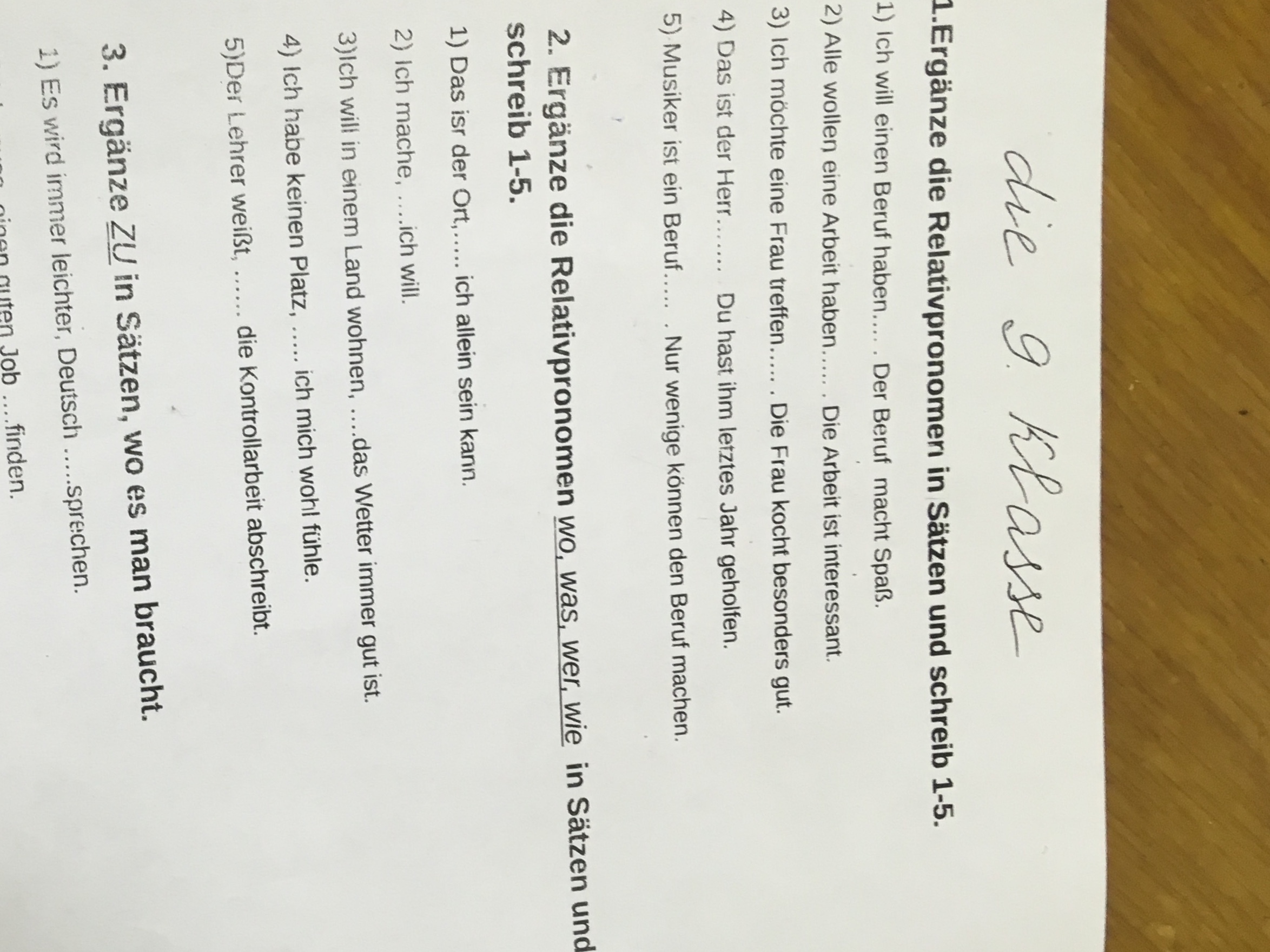 1. der 2. die 3.die 4.dem 5.den..... machen können.