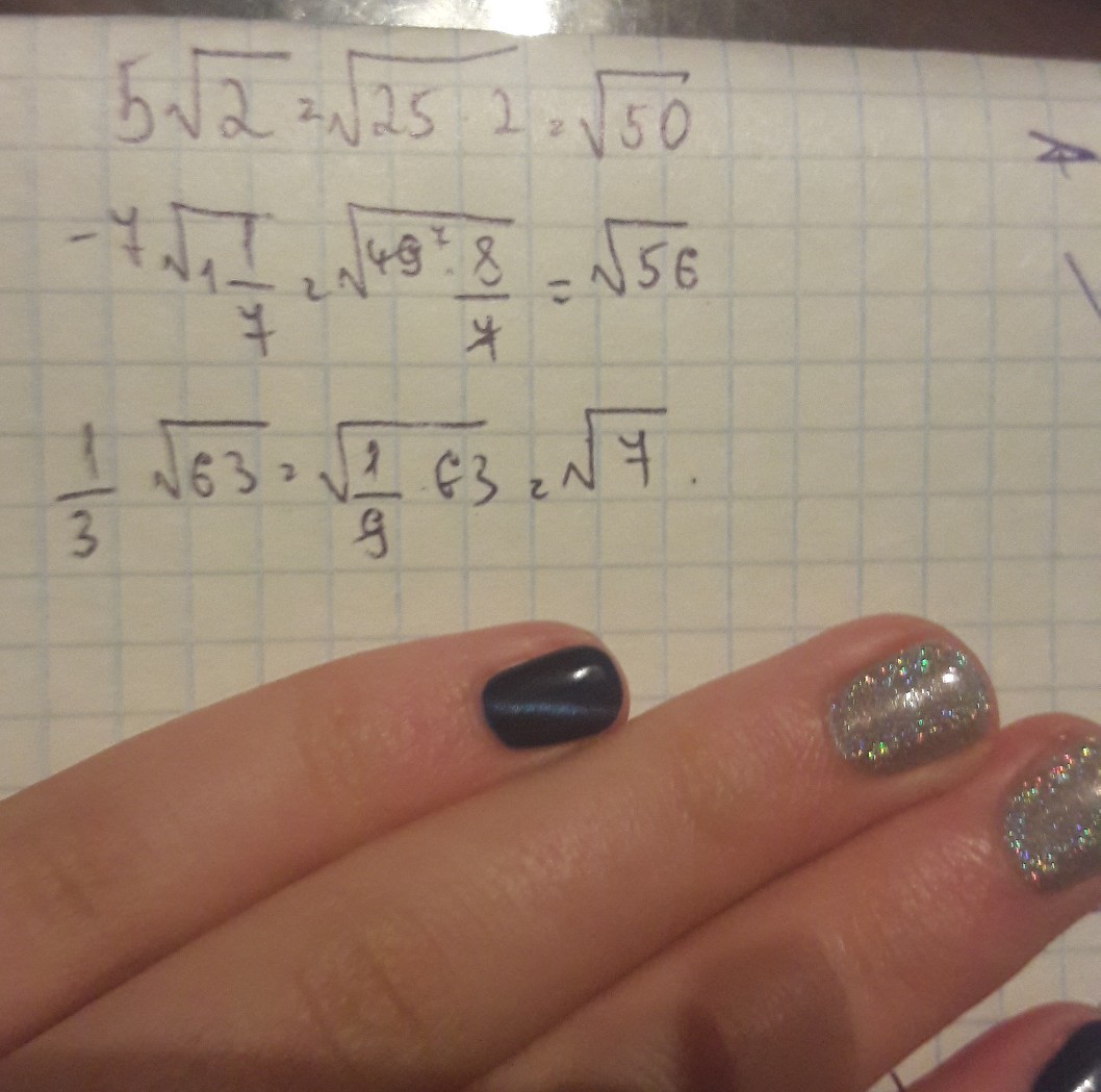 -7= корень из 49, 1 1/7=8/7, корень из 56