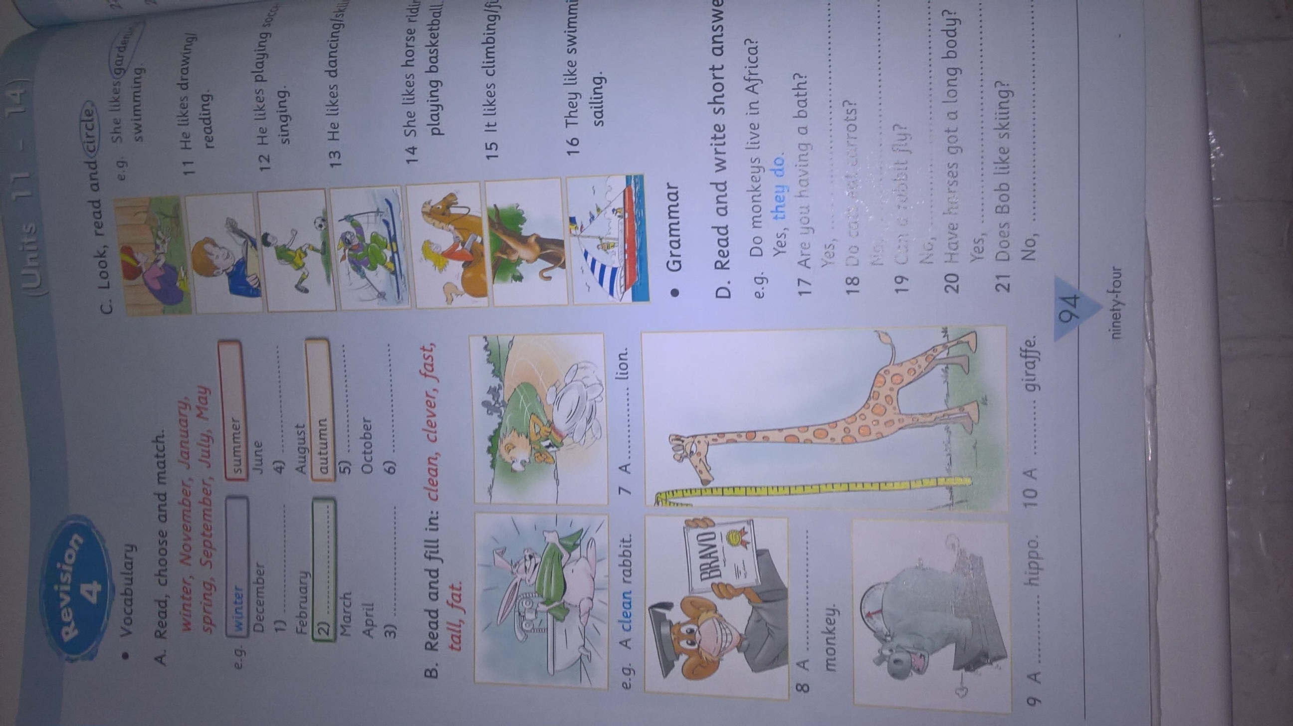 A 1 January; 2 spring ;3 May; 4 July; 5 September, 6 November