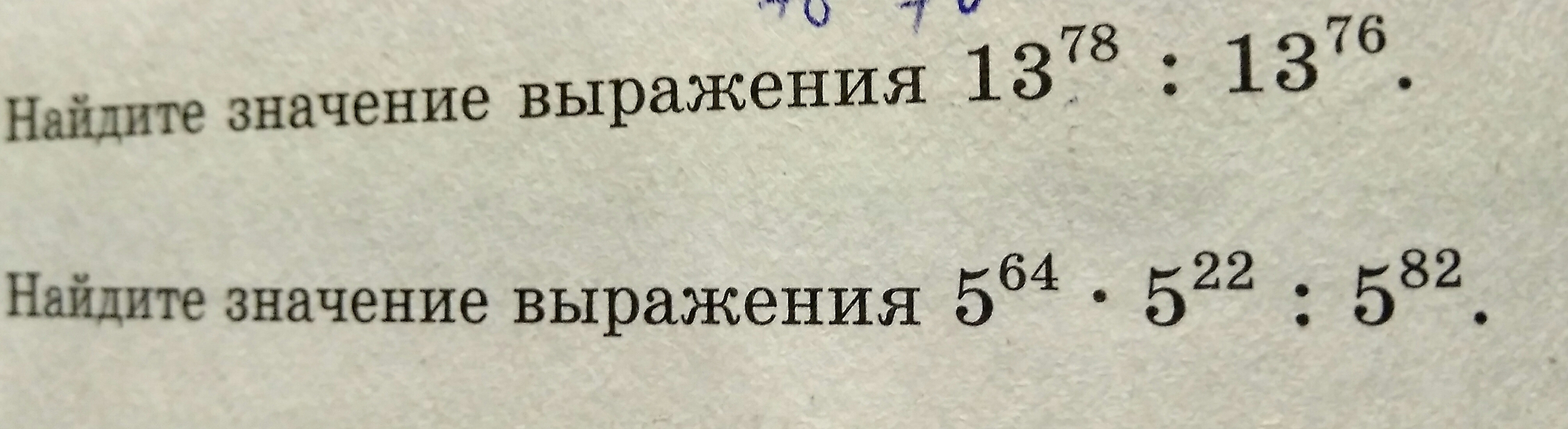 Все просто: при умножении двух одинаковых (ну, по основанию одинаковых) чисел с разными степенями, степени складываются, при делении вычитаются. В первом случае получается 13 в степени (78-76), то есть в квадрате. Во втором пять в четвертой.