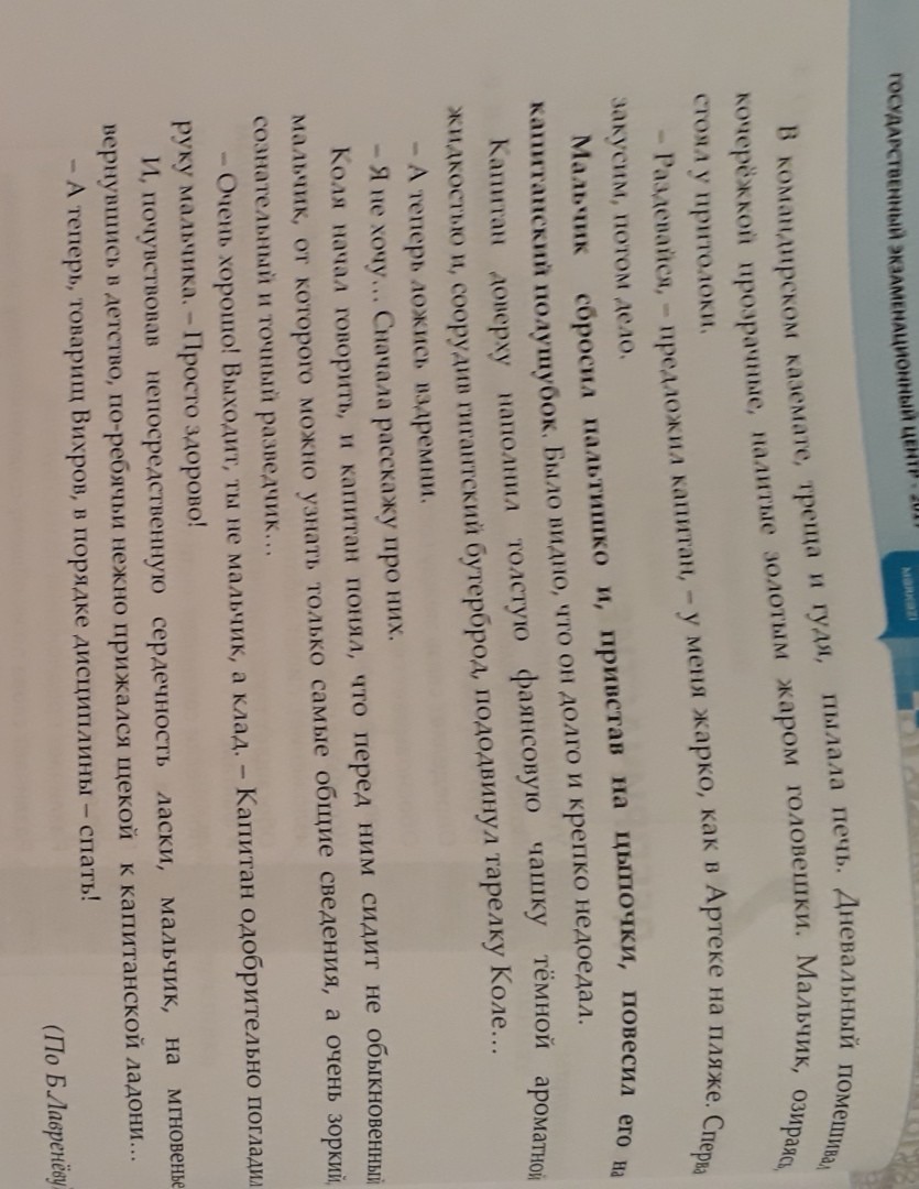 1. Мальчик сбросил пальтишко и, пристав на цыпочки, повесил его на капитанский полушубок. - Простое предложение с деепричастным оборотом - пристав на цыпочки.