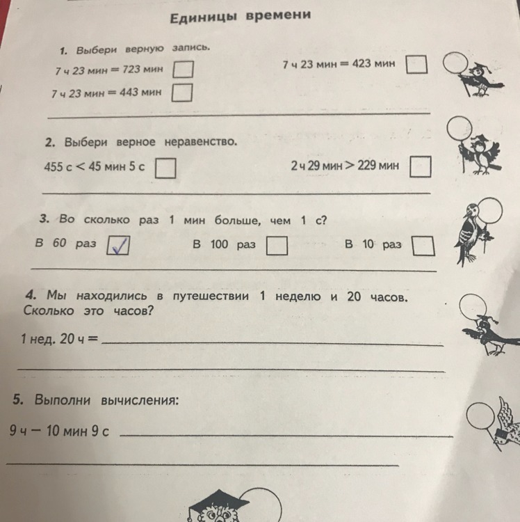 1)7 ч 23 мин= 443мин