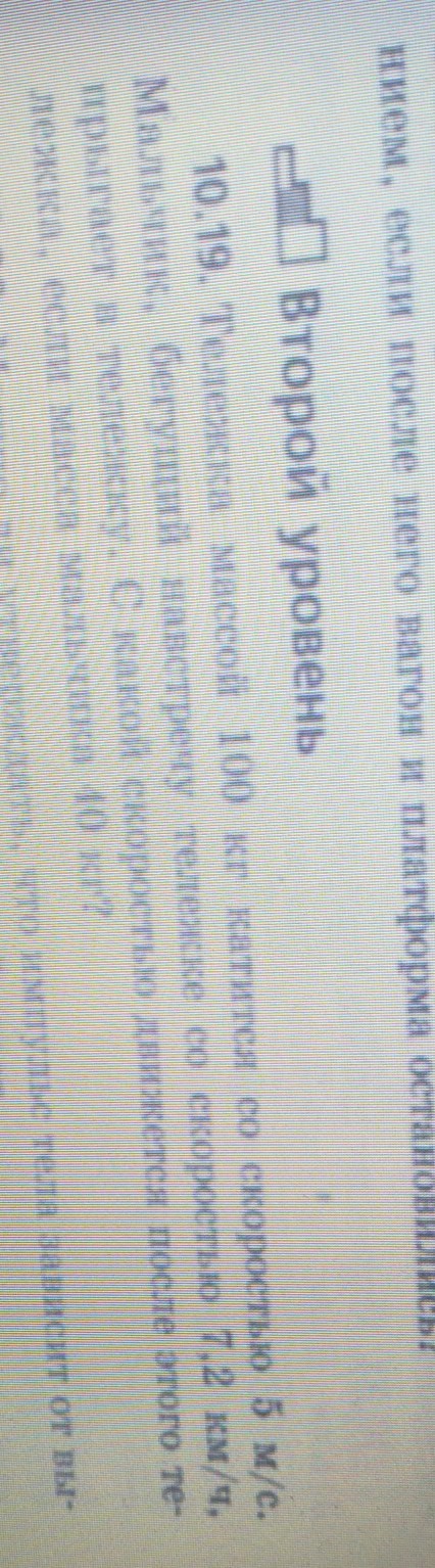 тележка массой 100кг катится со скоростью 5м/с мальчик бегущий навстречу тележке со скоростью 7,2км/ч прыгает в тележку. с какой скоростью движется после этого тележка если масса мальчика 40кг