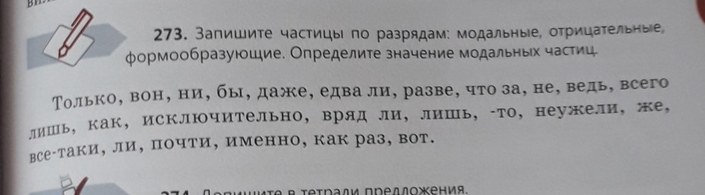 Запишите частицы по разрядам: модальные, отрицательные,формообразующие.Определите значение модальных слов.Русский язык 7 класс