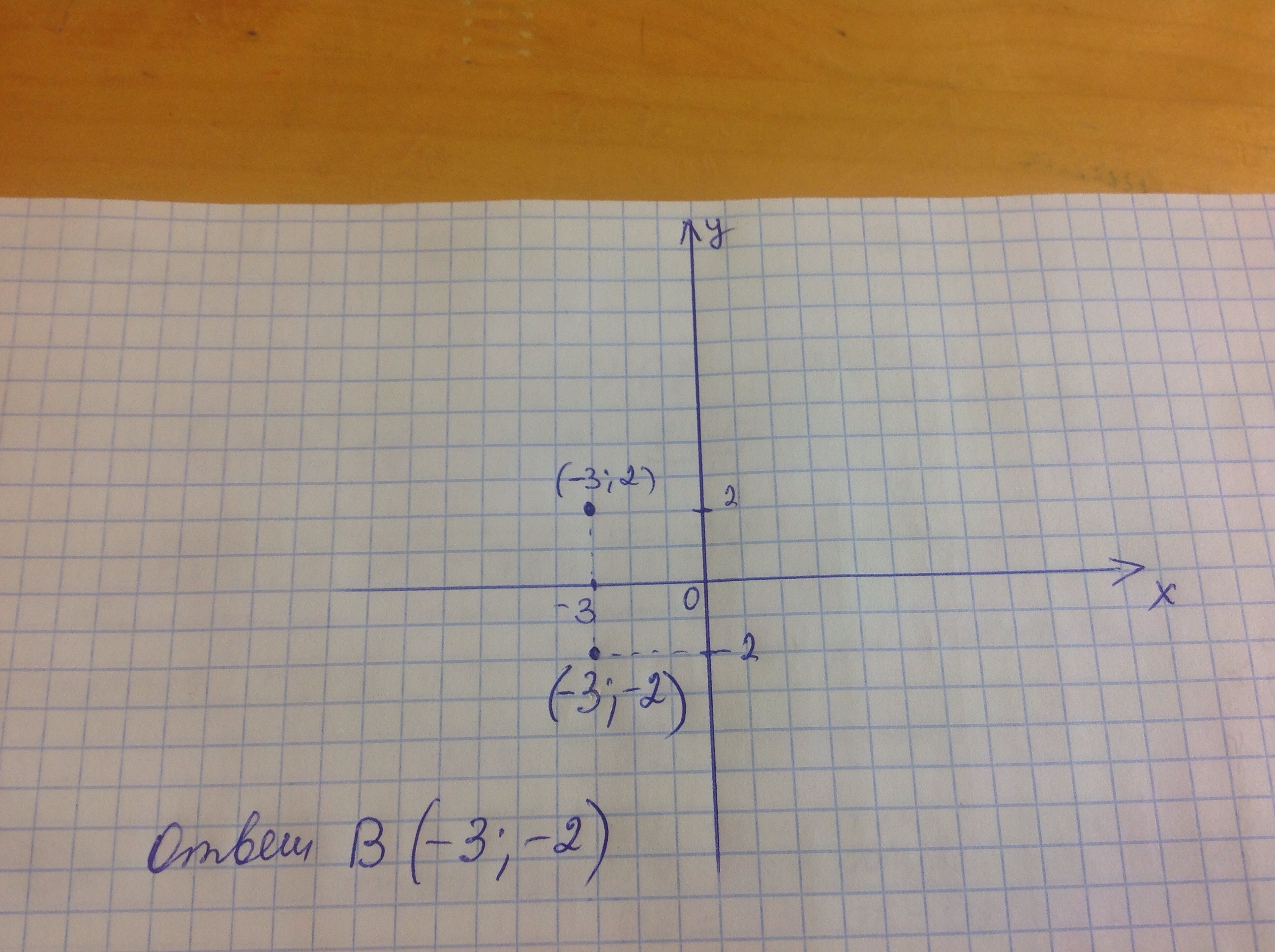 Найдите координаты точек симметричной точки (-3:2)относительно оси Ох