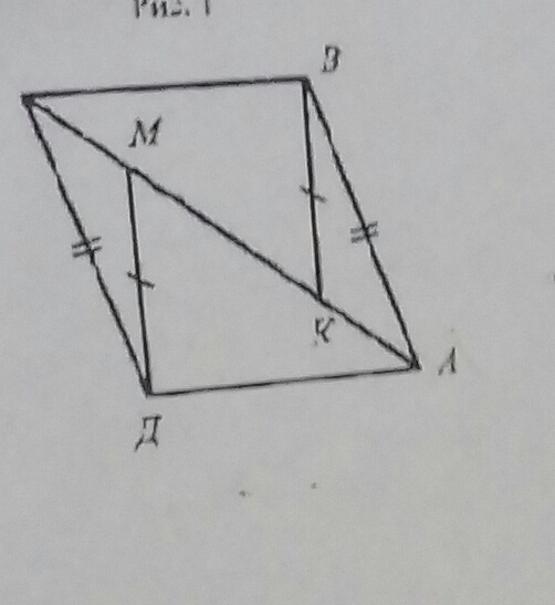 Треугольник АДМ = треугольнику СВК (по 2 сторонам и уголу между ними)