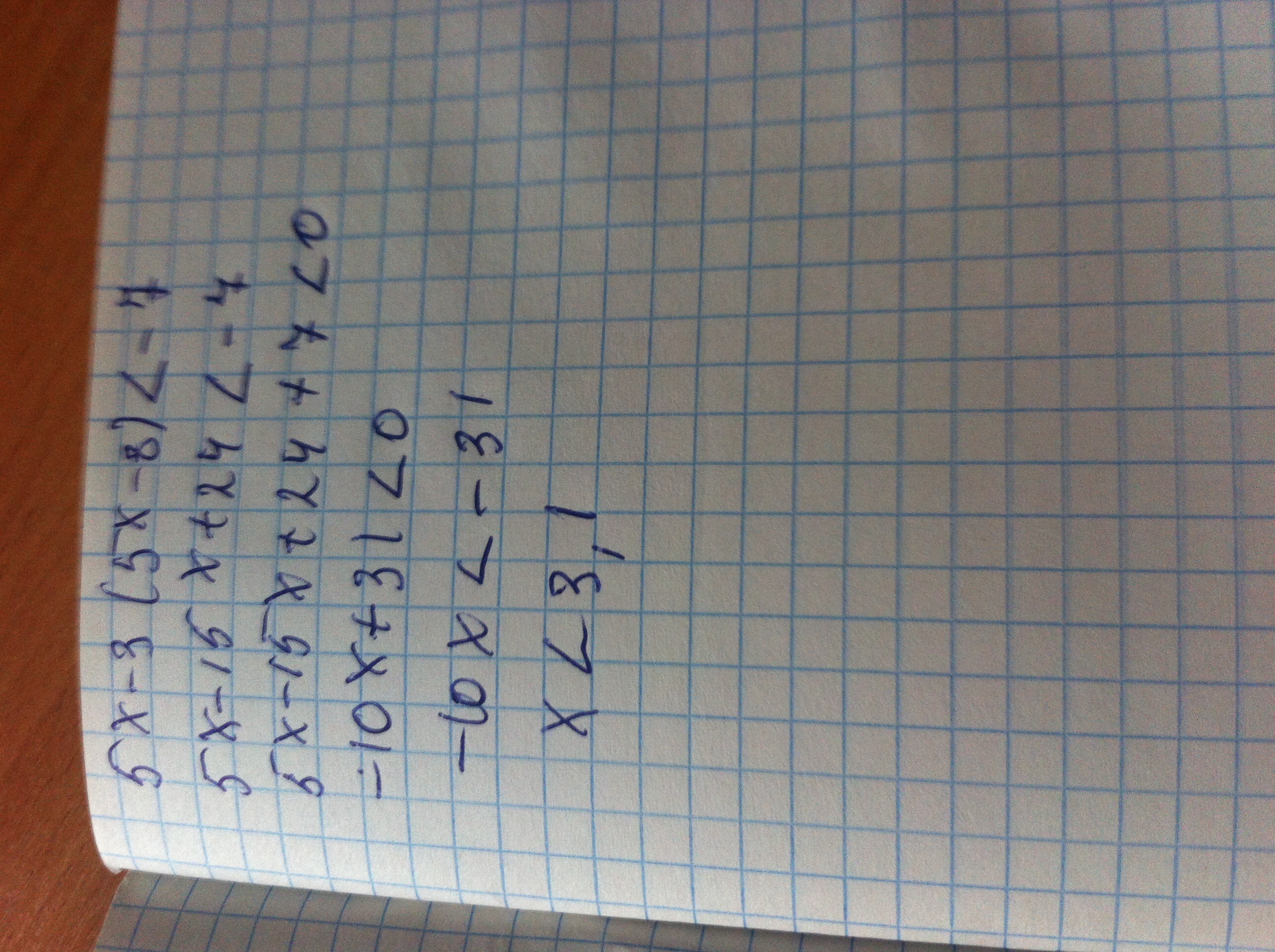 Для начала нам надо раскрыть скобку.Потм после этого действия можно перенести 24 в право,но я перевел -7 в лево.После надо подсчитать,перенести число без x в право и поделить.