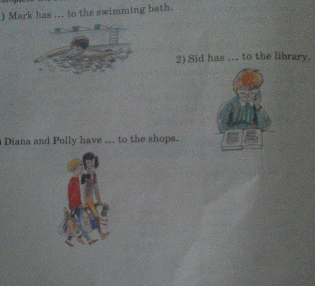 Mark has been, Sid has been to the library . Diana and Polly have been to the shops