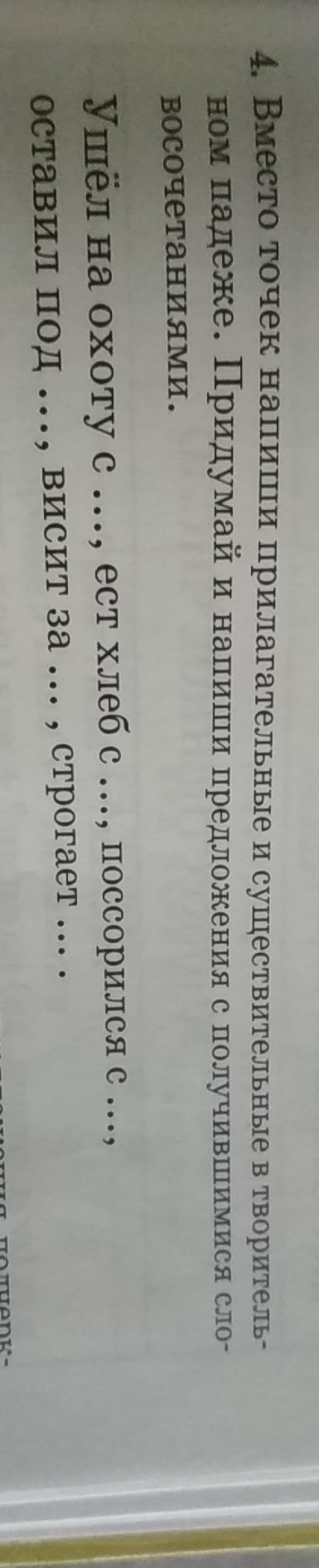 1. Ружьём, 2супом, 3другом, 4кроватью, 5верёвку, 6палку.