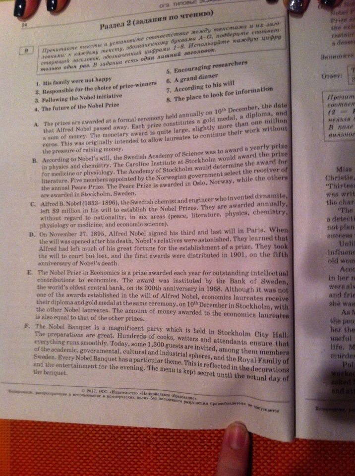Прочитайте тексты и установите соответствие между текстами и их заголовками: к каждому тексту, обозначенному A-G, подберите соответствующий заголовок, обозначенный цифрами. Используйте каждую цифру только один раз. В задании есть один лишний заголовок.