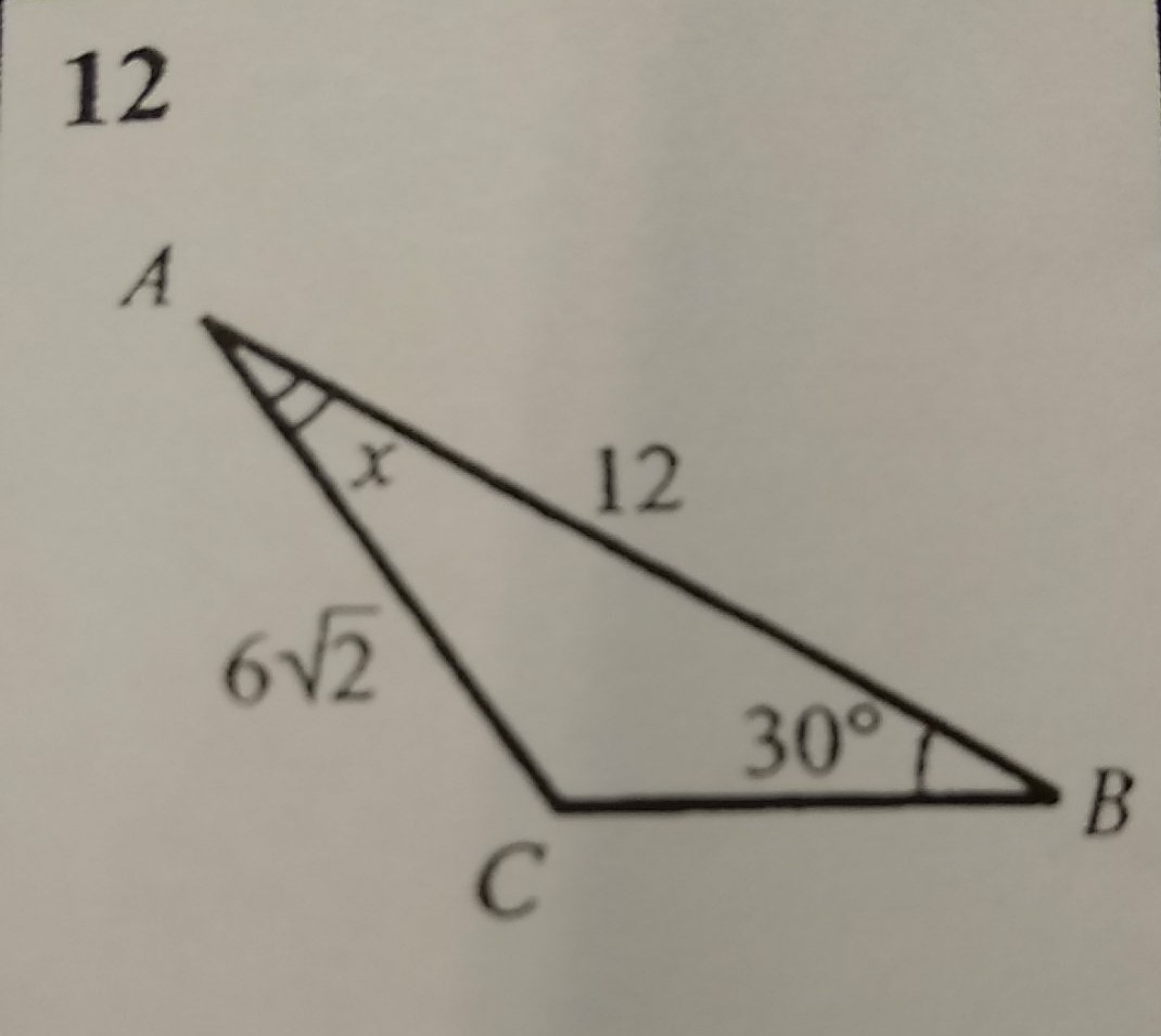 sin(C) = 12sin(30)/(6√2) = 1/√2