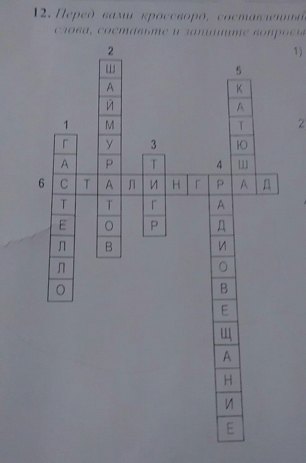 перед вами кроссворд составленный из понятий названных имен используя эти слова составьте и запишите вопросы к кроссворду