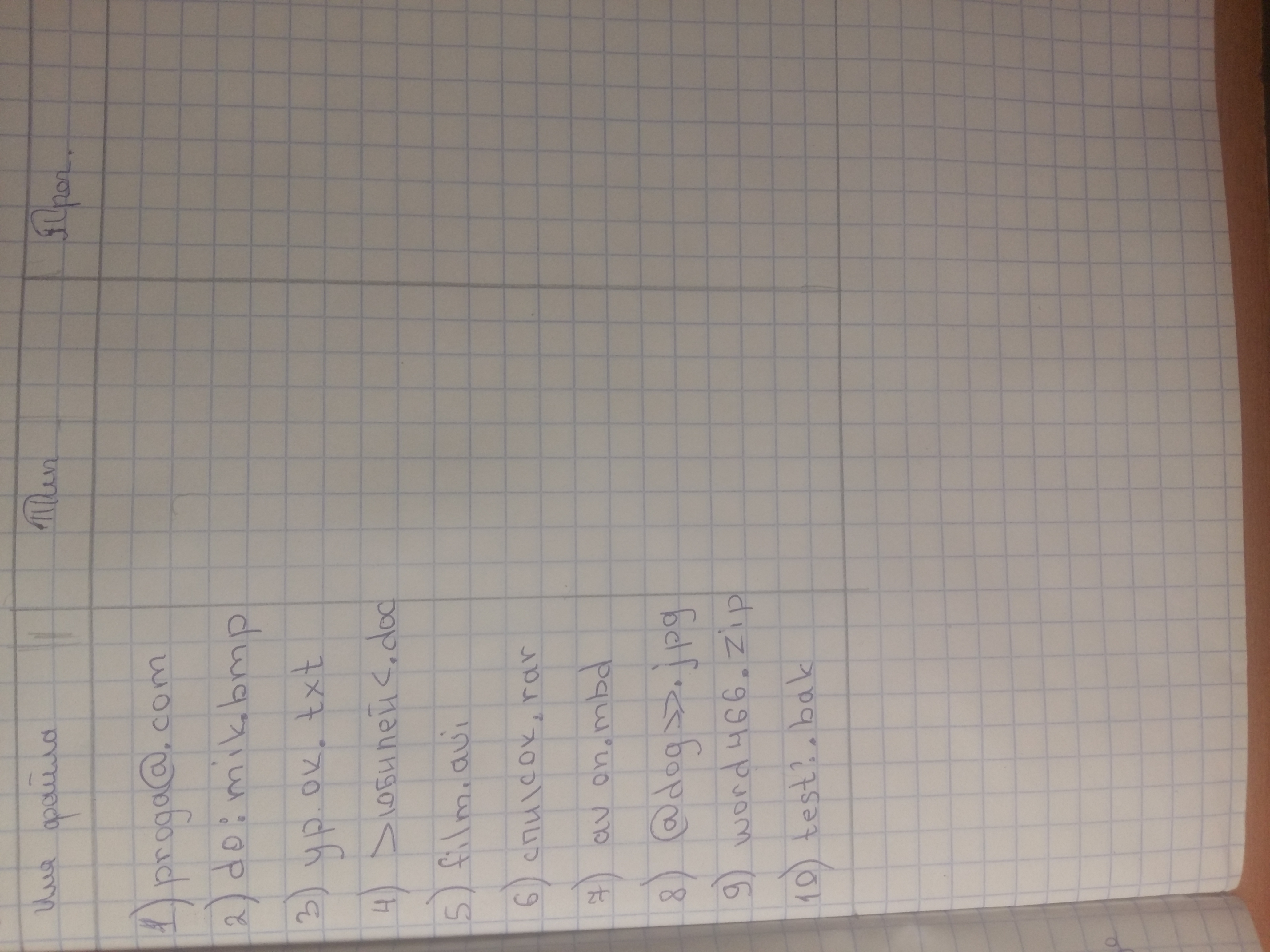 Докончить таблицу из трех колонок:1.имя файла; 2.тип файла; 3.программа