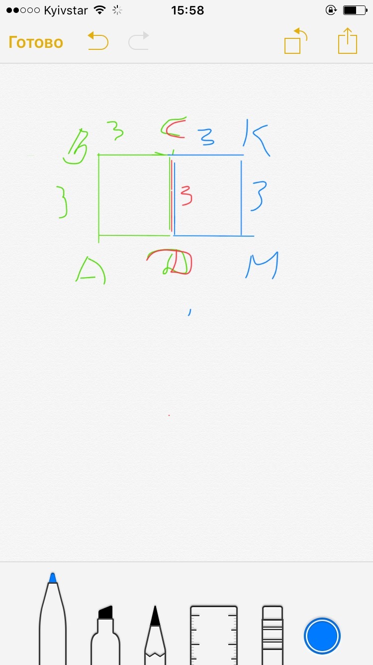 Р=СД+КМ+СК+ДМ= 3+3+3+3= 12 см