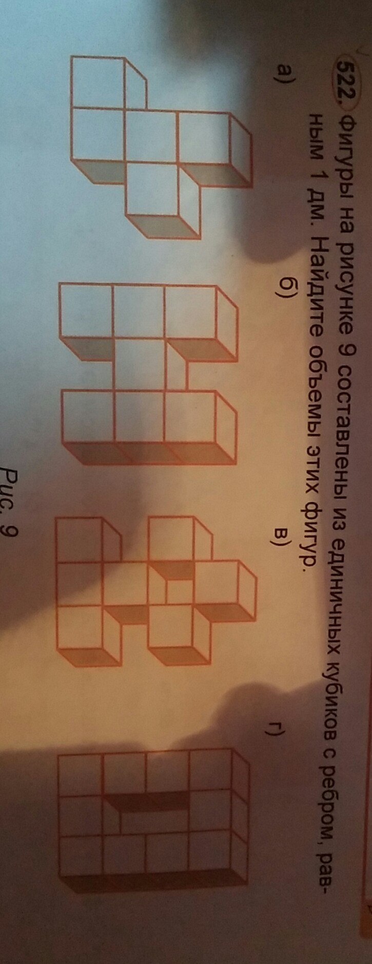 Рисунок г) состоит из 10 кубиков
